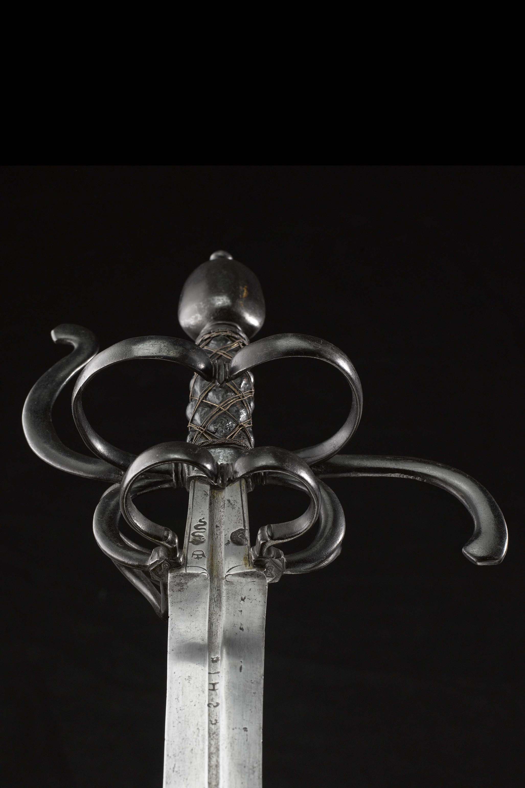 Erhaltungszustand auf uns gekommen ist. Das Gefäß des Rapiers weist noch die originale Bläuung auf, die bei den meisten erhaltenen Waffen und Rüstungen