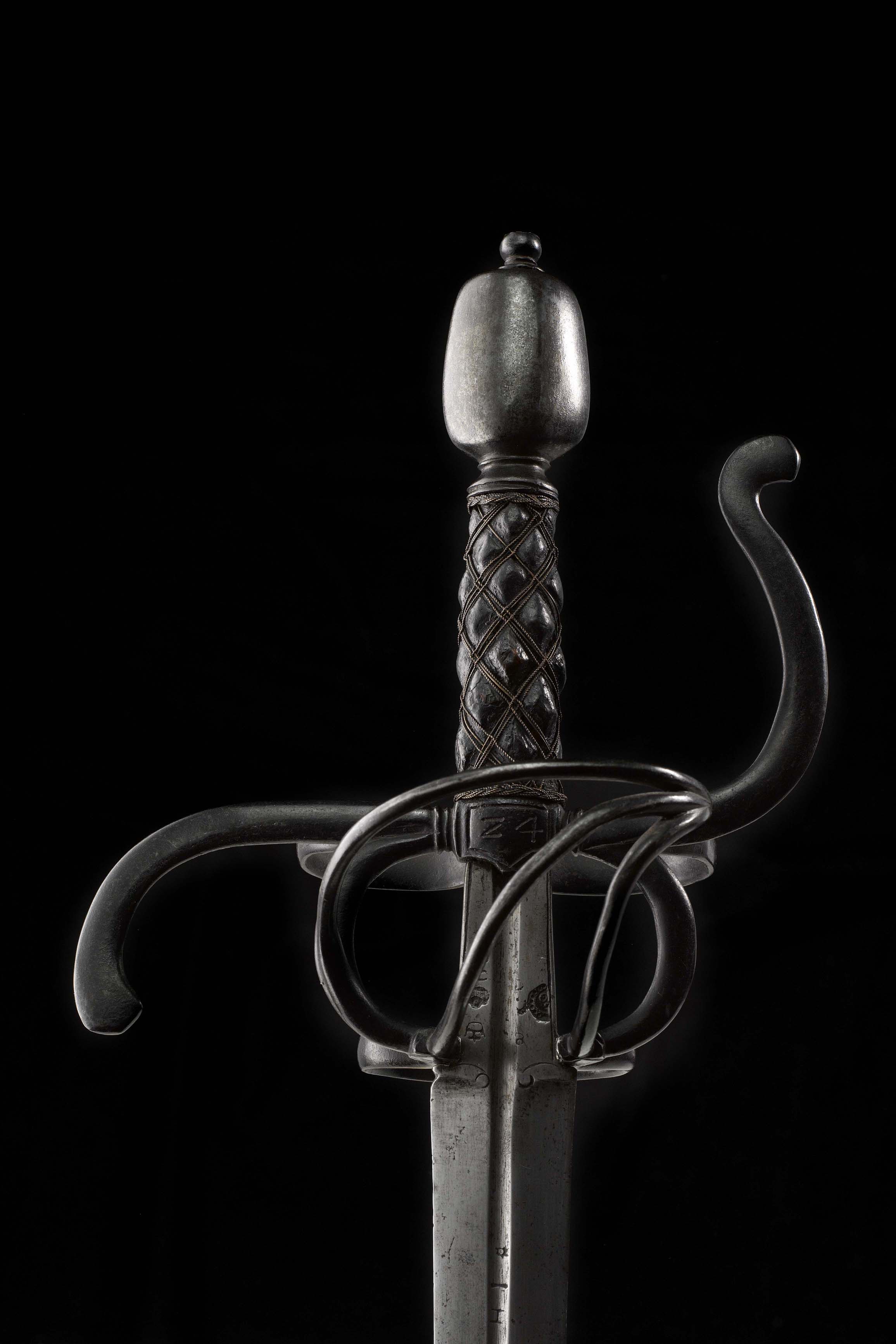 Parierrings bzw. der Fingerbügel mit diesen zu verschmelzen. Der Mittelschild weist die Gravur „24“ auf. Es handelt sich hier um eine Waffennummer, die das