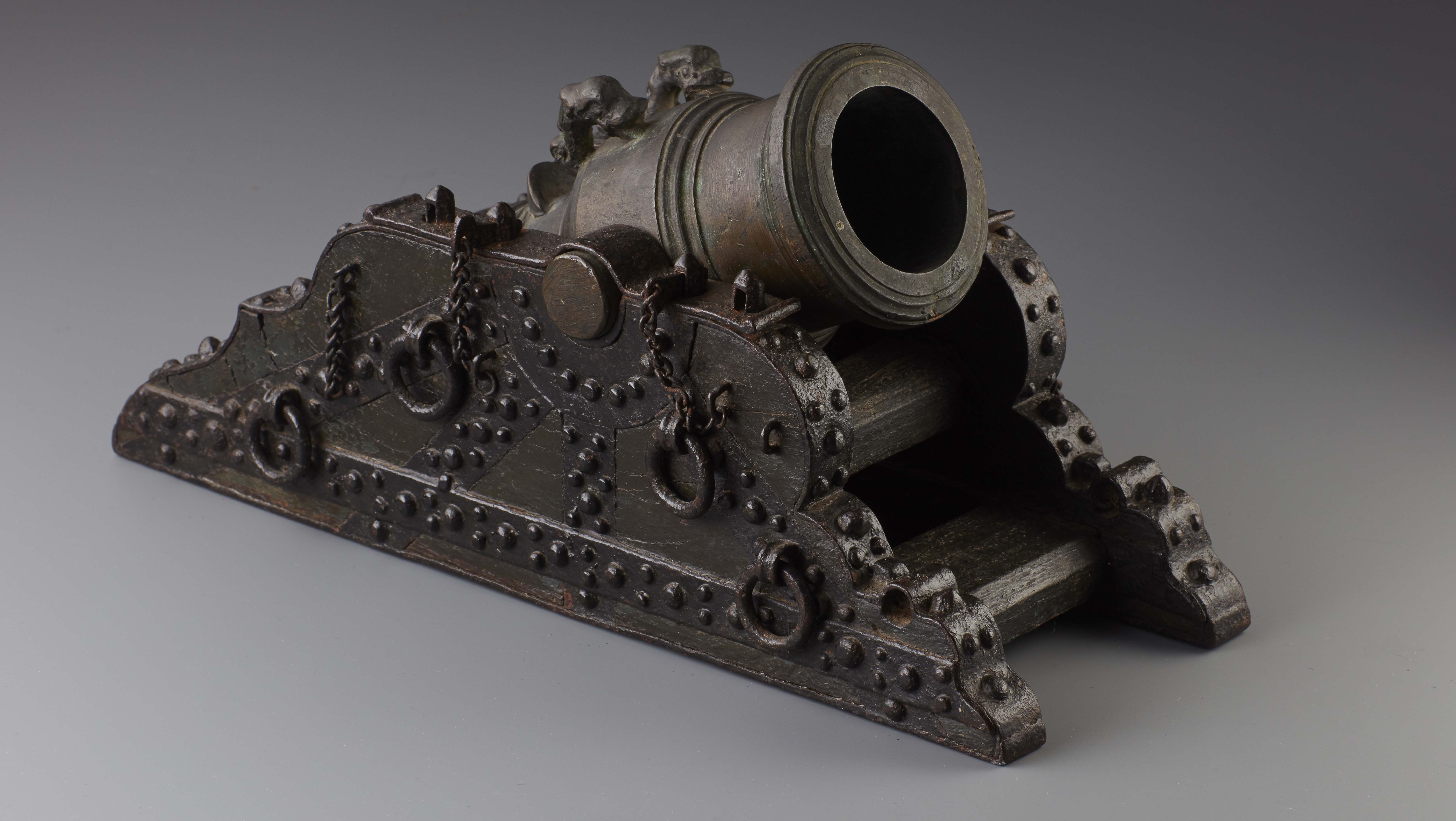 through the bar. Comparable to life-size mortars of that age chains secured these bolts, so they